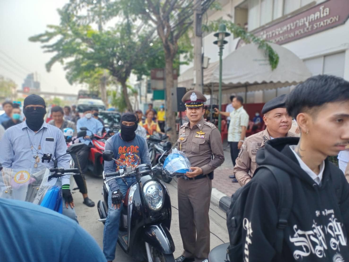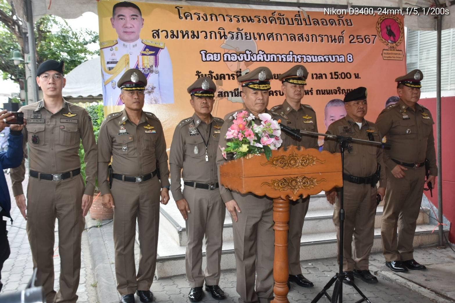 – พล.ต.ต.ธวัช วงศ์สง่า รอง ผบช.น. (น.12) ประธานในพิธี เดินทางมาถึง บริเวณจัดกิจกรรมโครงการรณรงค์ขับขี่ปลอดภัย สวมหมวกนิรภัย เทศกาลสงกรานต์ 2567