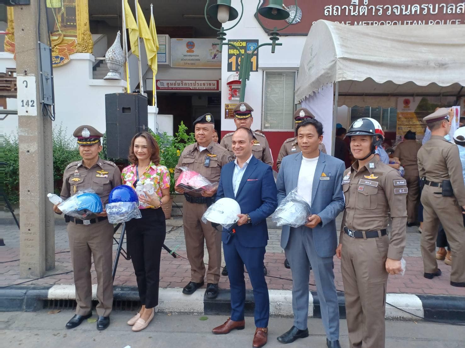 – แจกหมวกกันน็อค – แผ่นพับประชาสัมพันธ์ 10 รสขม – ขนม/น้ำดื่ม/ยาดม