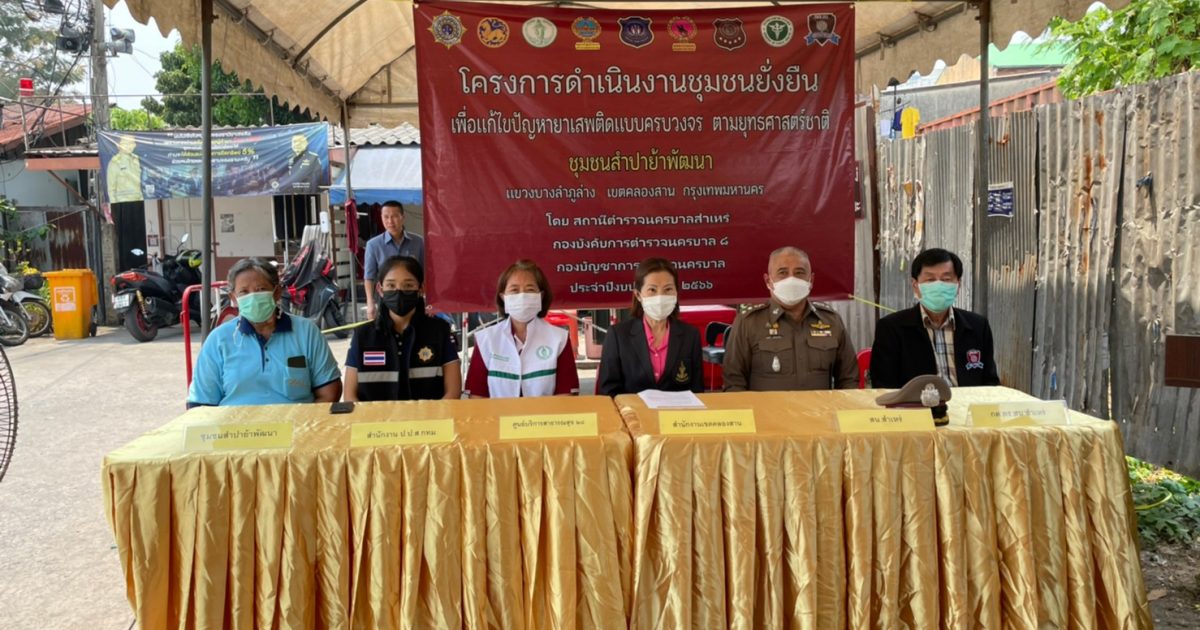 🤝 ร่วมกันทำประชาคมและลงนาม MOU ตามโครงการชุมชนยั่งยืนเพื่อแก้ปัญหายาเสพติดแบบครบวงจรตามยุทธศาสตร์ชาติประจำปี 2566 โครงการดำเนินงานดูแลผู้ที่ใช้ยาเสพติดโดยชุมชนเป็นศูนย์กลาง(CBTx)ของสาธารณสุข 28  ณ ชุมชนสำปาย้าพัฒนา แขวงบางลำภูล่าง เขตคลองสาน กทม.