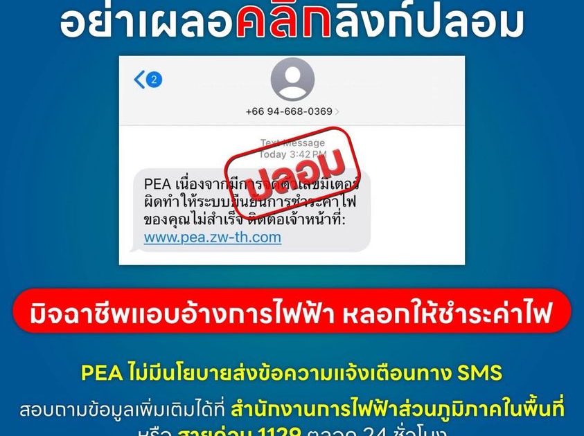 มิจฉาชีพแอบอ้างการไฟฟ้า หลอกกดลิงก์ให้ชำระค่าไฟ