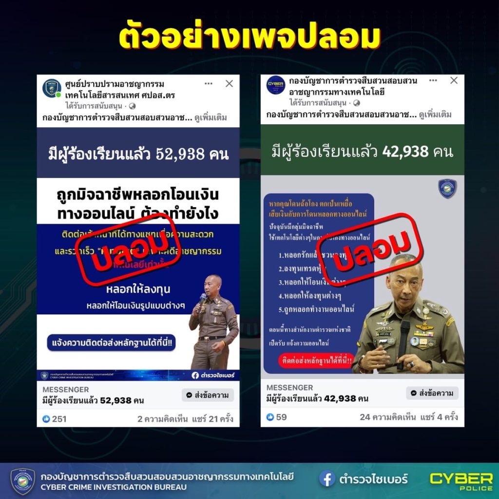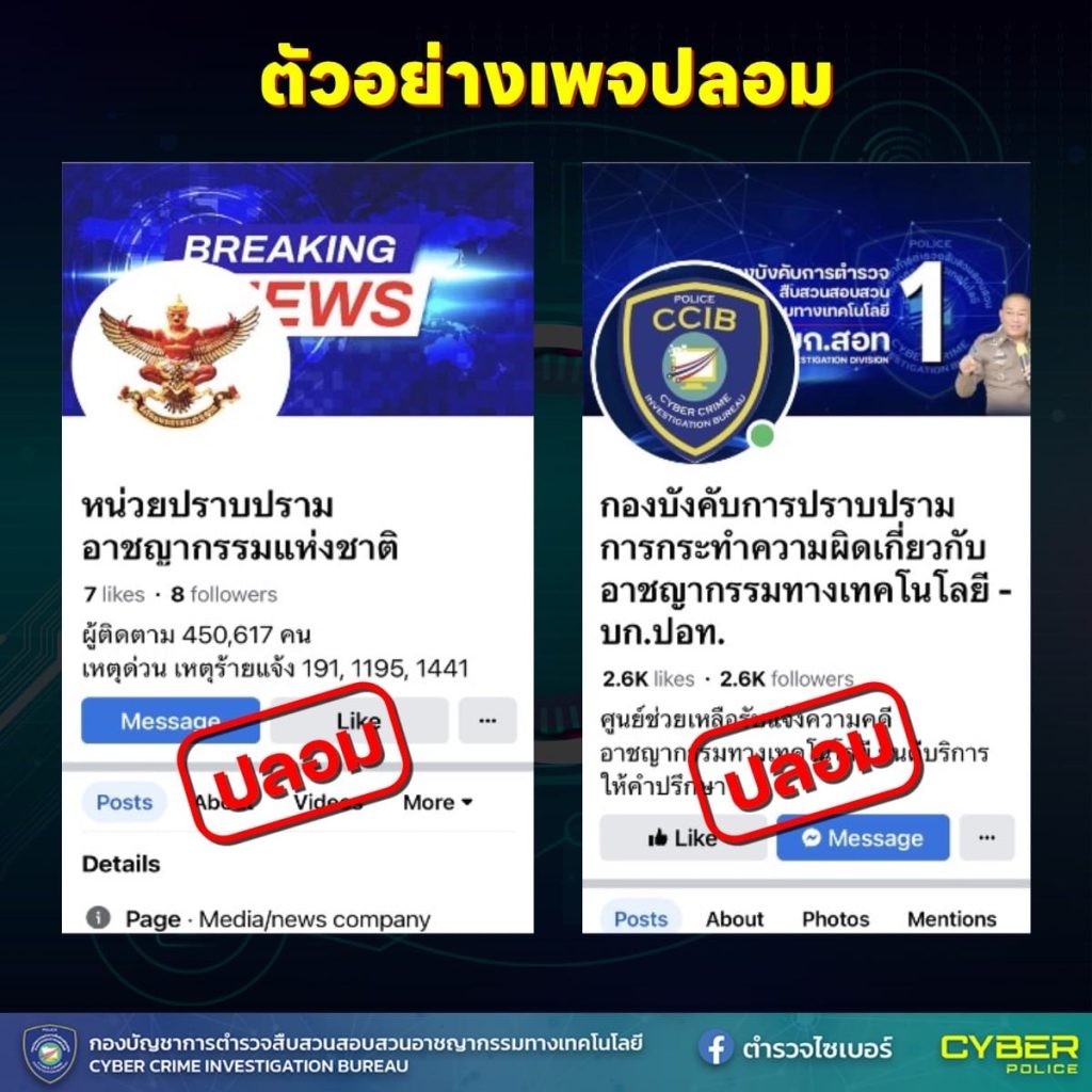 เพจปลอมระบาด แอบอ้างตำรวจไซเบอร์ หลอกรับช่วยเหลือเหยื่อโจรออนไลน์