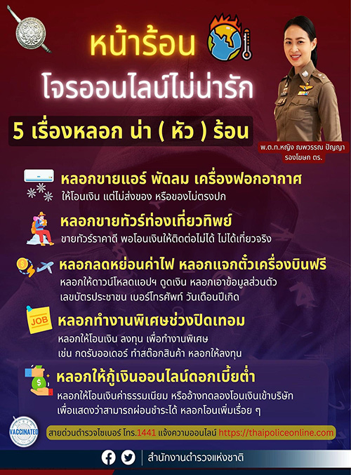 รองโฆษก ตร. เตือน “ภัยออนไลน์หน้าร้อน” มิจฉาชีพมาได้ทุกรูปแบบ พ.ต.ท.หญิง ดร.ณพวรรณ ปัญญา รองโฆษกสำนั
