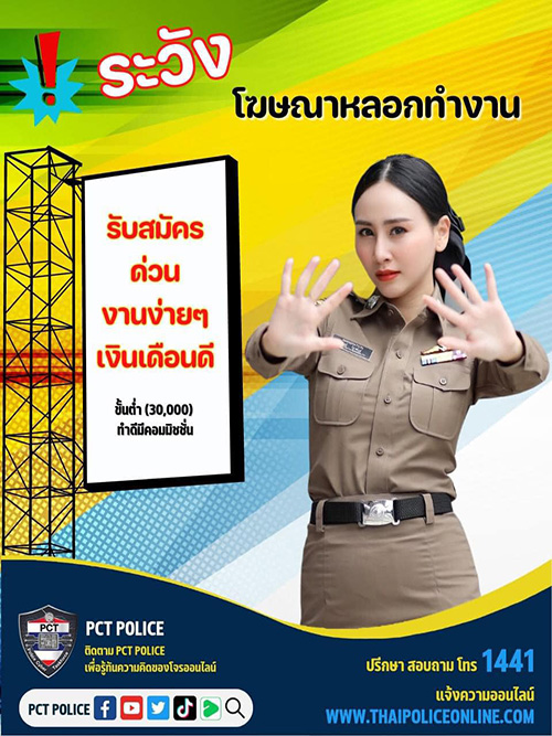 “ หยุดเป็นเหยื่อภัยคุกคามการเงินออนไลน์เพราะอยากทำงานสบายที่ได้เงินง่าย ๆ ” งานแอดมินเพจ คอยติดต่อแล