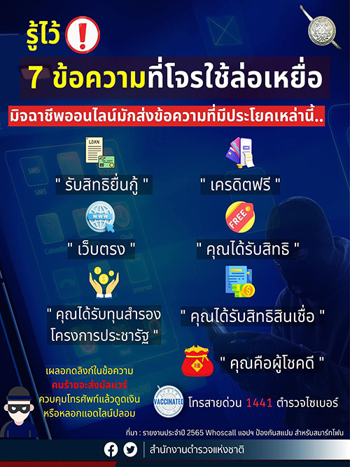 รู้ไว้!! 7 ข้อความแบบนี้ ..โจรออนไลน์มักใช้ล่อเหยื่อมิจฉาชีพจะส่งข้อความเข้าโทรศัพท์มือถืออาจเป็น SM