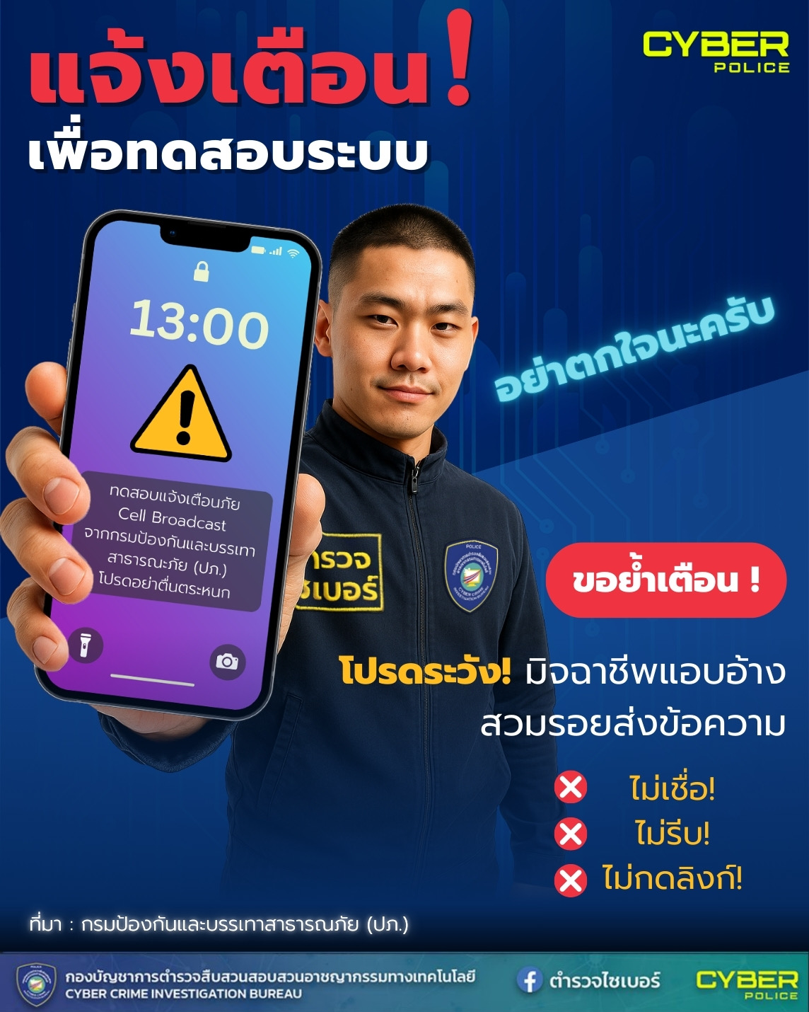 แจ้งเตือนเพื่อทดสอบระบบ! อย่าตกใจนะครับปภ.เตรียมทดสอบส่งข้อความเตือนภัยผ่าน Cell Broadcast 3 ระดับใน